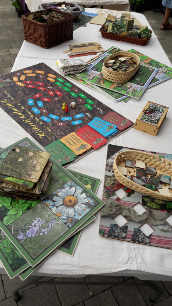 A felnőttek és a kisgyermekek is élvezettel ismerkednek ezekkel a növényekkel, amihez szeretnék segítséget nyújtani kötetlen beszélgetéseken, játékokon keresztül minden korosztálynak. A puzzle, sudoku és memóriajátékok, a fejtörők mind-mind gyógy- és fűszernövényekről készült képekkel, fotókkal a kisebbeket és nagyobbakat egyaránt elgondolkodtatják (a játékokat grafikus tervezte és rajzolta, a kivitelezésük nyomdában történt). A csoportos játékok inkább az óvodás, iskolás korosztálynak szólnak, főként kültéren, minimum kettő, 2-3 fős csapattal, akár versenyszerűen.